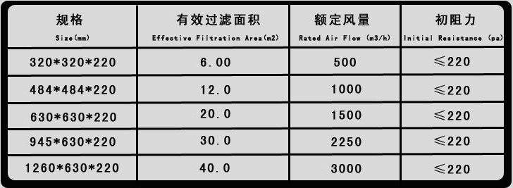 此过滤器采用镀锌板或铝合金外框,胶板纸或铝箔隔板,高效密封胶。滤料采用特殊防潮玻璃纤维滤纸或超细玻璃纤维滤纸。