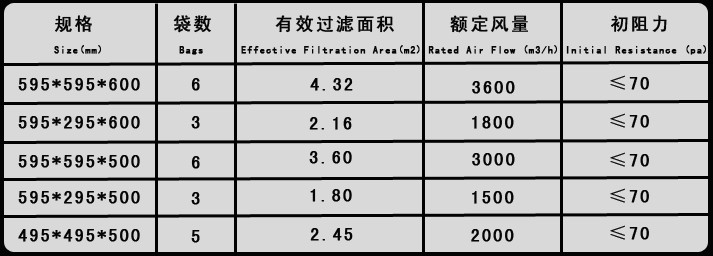 中效袋式过滤器是在工业洁净环境和建筑物洁净环境中应用最广泛和应用最大的过滤器品种,其过滤效率主要分为F5、F6、F7、F8和F9几类是中效过滤段中常见的一种,具有过滤面积大、容尘量大、阻力低等优点。